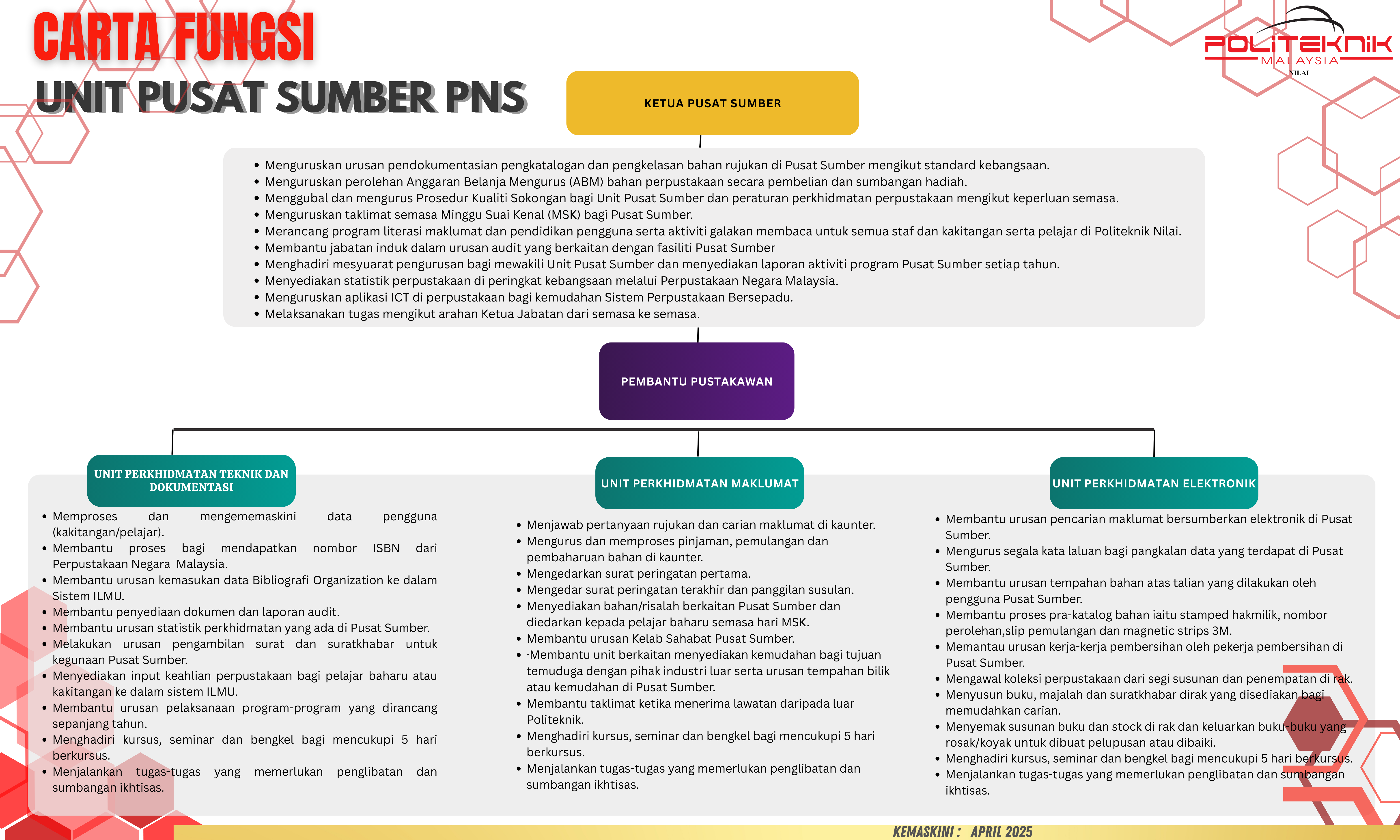 Pusat Sumber PNS sentiasa berusaha untuk memantapkan mutu perkhidmatan agar sejajar dengan keperluan dan kehendak semasa warga PNS terutama dalam menyokong aktiviti pengajaran, pembelajaran dan penyelidikan. Bagi tujuan tersebut, pelbagai perkhidmatan yang disediakan seperti: